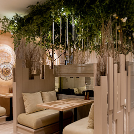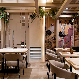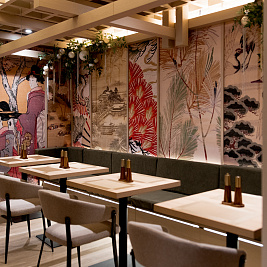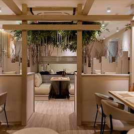 В первом зале гостей окружает аутентичная атмосфера, созданная благодаря использованию классических темных тонов и деталей декора, привычных для классических пространств в Японии. Интерьер второго зала, напротив, выполнен в светлых тонах и навевает мысли о цветении деревьев в японских садах. Вы можете выбрать любое пространство в зависимости от предпочтений или настроения — в любом случае, посещение нашего ресторана доставит истинное наслаждение ценителям японской культуры и кухни.